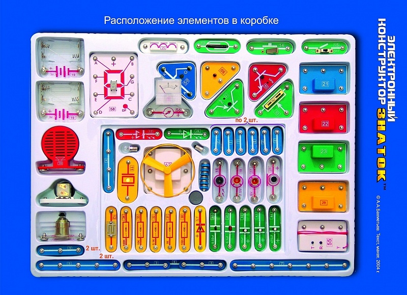 Электронный конструктор Знаток - это 21 практическое занятие для школы и множество схем для дополнительных занятий. Основная задача практических занятий – показать связь между школьной программой и окружающей нас современной жизнью. Именно поэтому конструктор содержит элементы, которые присутствуют практически во всей окружающей нас технике – компьютерах, телефонах, автомобилях, фото и видеокамерах, телевизорах, музыкальной аппаратуре.