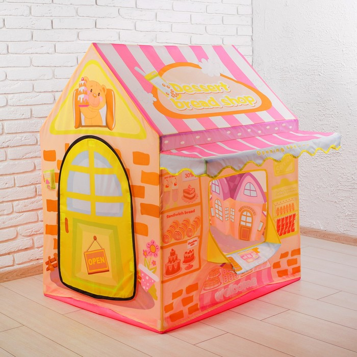 Игровая палатка "Французская кондитерская" великолепно подходит для детских сюжетно-ролевых игр. Дизайн изделия выполнен в стиле изысканного французского кафе. Две стороны палатки оснащены окошками. Рядом с дверцей расположен настоящий звонок.