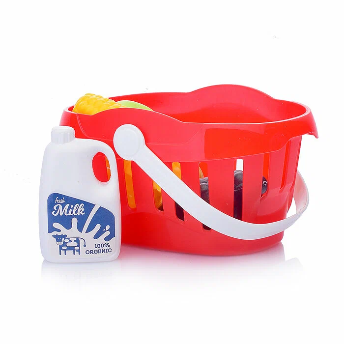 корзина для продуктов (14х9х9 см.), монеты и купюры, карточка, фигурки продуктов, |