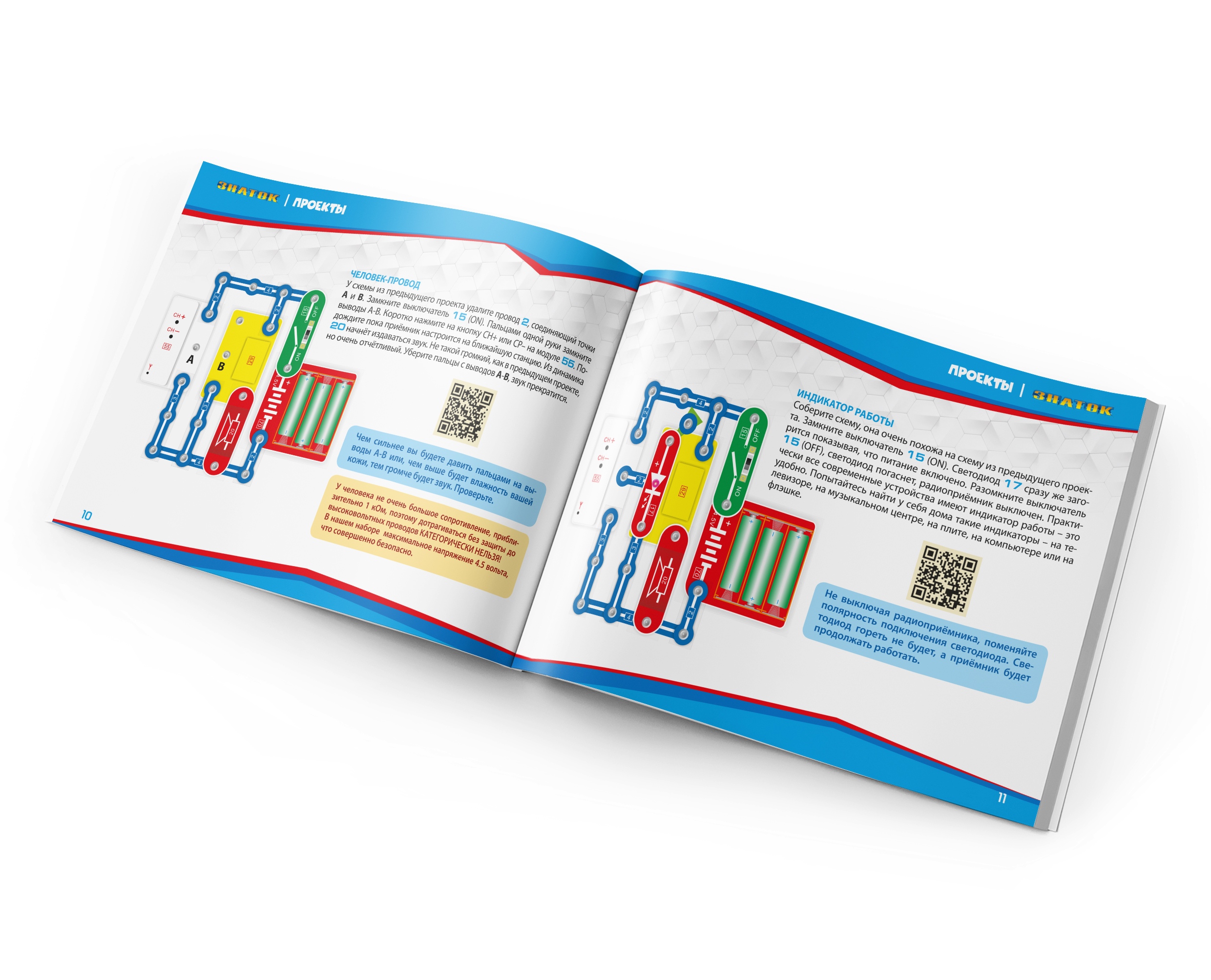 Даже без помощи взрослых, используя очень понятное цветное руководство, всего за несколько минут, дети смогут собрать и испытать схему с практически 100% положительным результатом. Очень полезна будет подсказка в виде QR-кода, которую можно просмотреть при помощи смартфона или планшета.