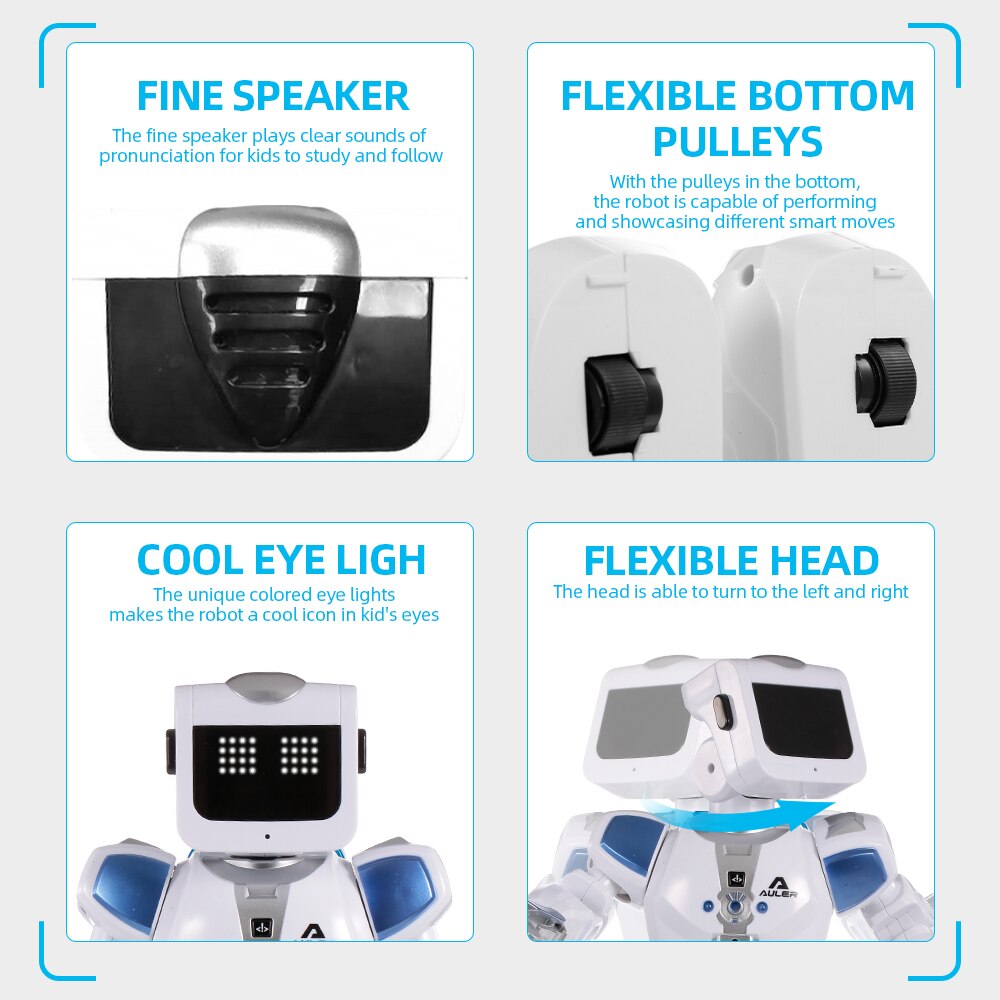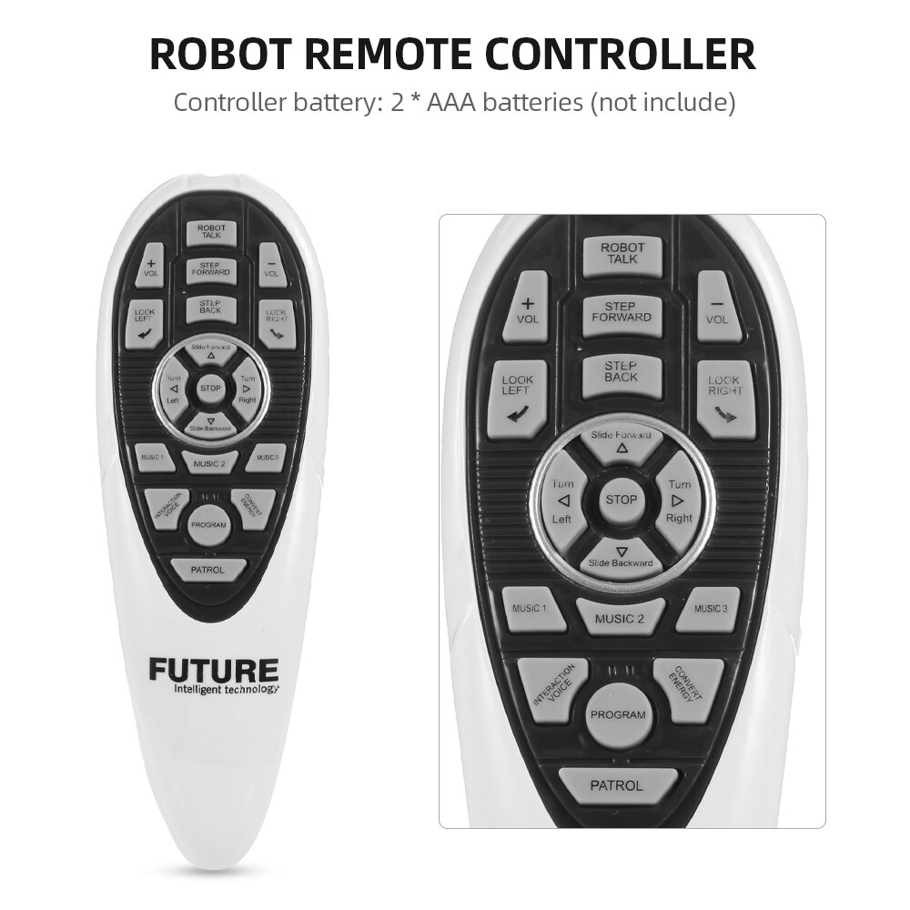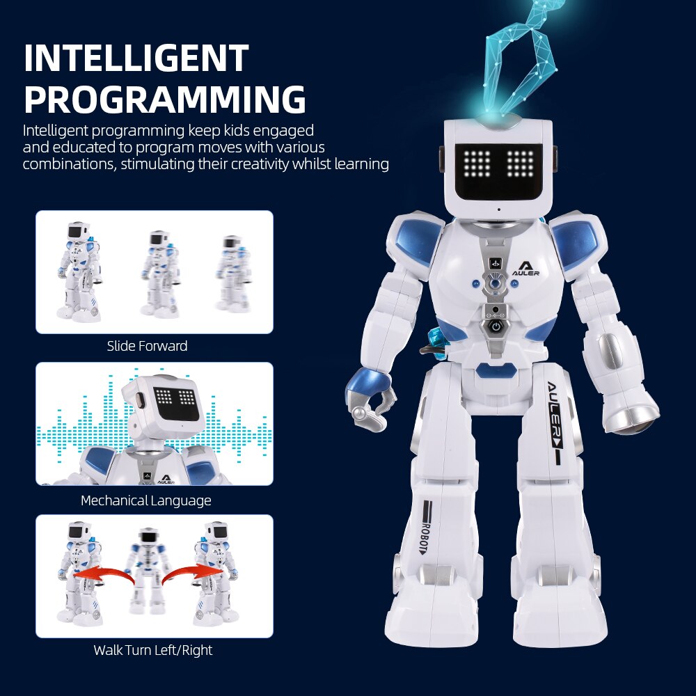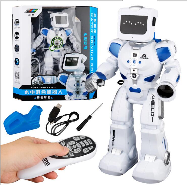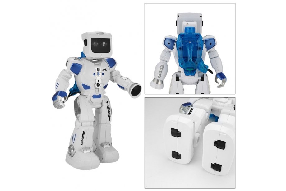 Современный робот на радиоуправлении K3 со звуковыми и световыми эффектами удивит Вашего юного любителя инновационных технологий функциональными возможностями. После наполнения заднего контейнера водой, зафиксированного на спине у космического друга происходит включение игрушки. Робот оснащен множеством интересных программ, позволяющим ему не только двигаться вперед-назад, поворачиваться, вертеть головой, петь и говорить, но и даже танцевать под музыку. Производительный аккумулятор Li-Ion с емкостью 600mAh обеспечит продолжительную, веселую игру. Интерактивный робот K3 New Auler – это уникальная игрушка, предназначенная для деток старше пяти лет, с которой ребенок будет развивать логическое мышление, координацию движений и фантазию. Игровой набор дополнен коробкой размером 42 х 15 х 39 см, а также пультом радиоуправления с радиусом действия до 10 метров, с которым легко справится даже новичок. Представленная модель поразит Вашего непоседу удивительной детализацией, маневренностью и футуристичным дизайном, добавляющим игре реалистичности.