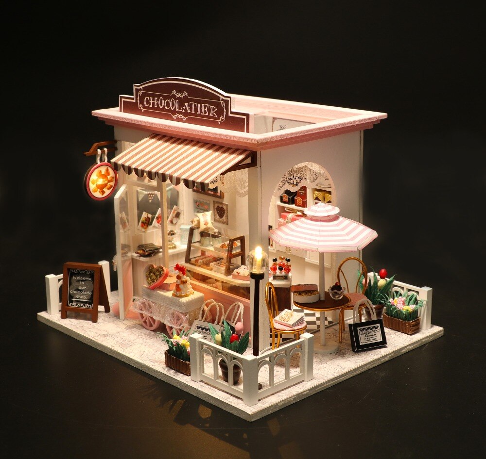 Интерьерный конструктор - это миниатюрная модель уютных интерьеров. Собирая румбокс "Шоколодница" Вы обязательно будете представлять себя сидящими в центре Парижа в уютном семейном магазинчике шоколада на летней веранде с чашечкой ароматного кофе, любимой конфетой и круассаном, читая местную газету со свежими новостями. Натуральные материалы для сборки - дерево, бумага, ткани. В комплект входит: все необходимые для создания миниатюры детали, светодиоды, инструменты для сборки, подробная инструкция на русском языке.
