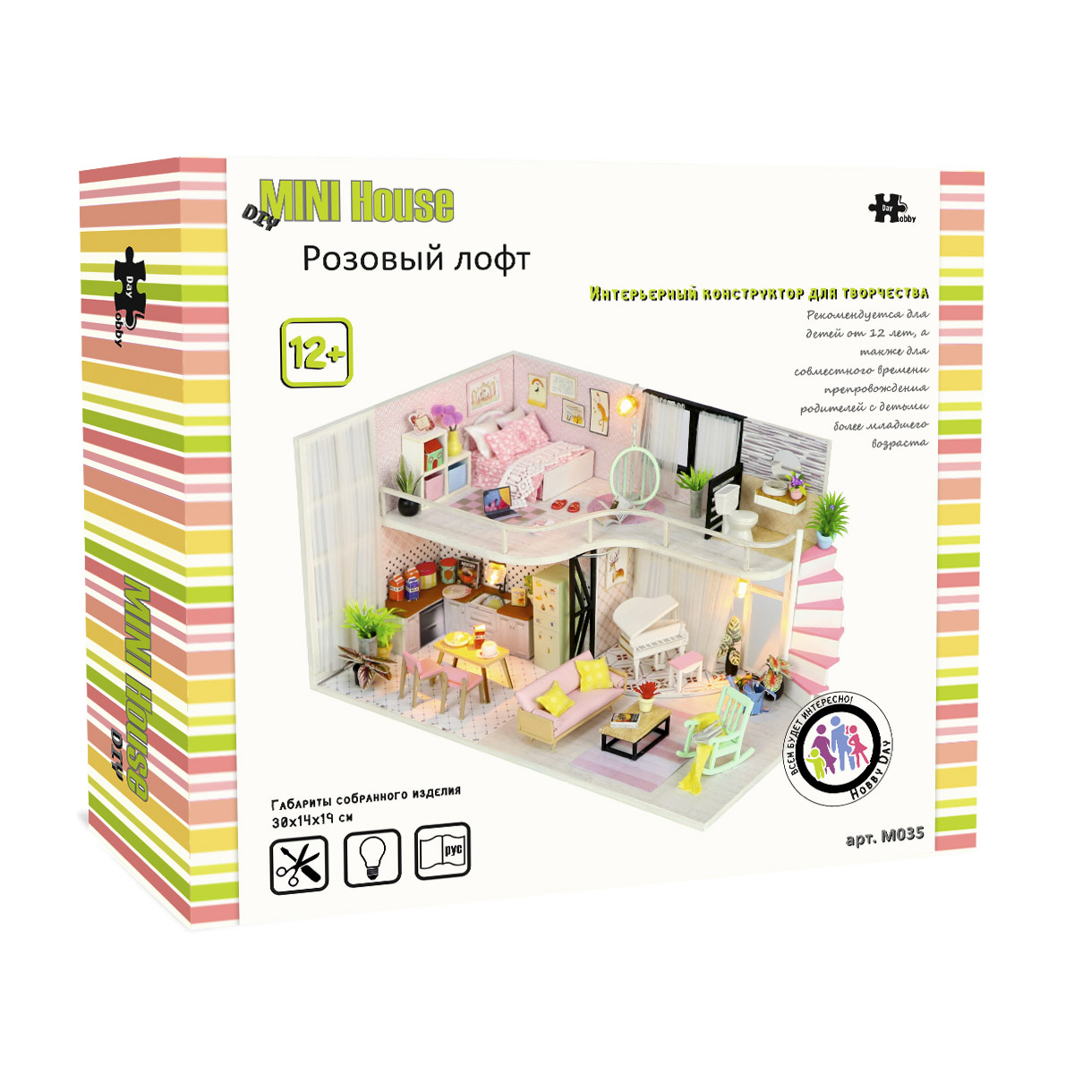Конструктор интерьерный Румбокс - Розовый лофт, с подсветкой, HOBBY DAY M035
