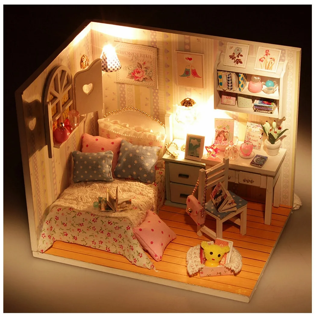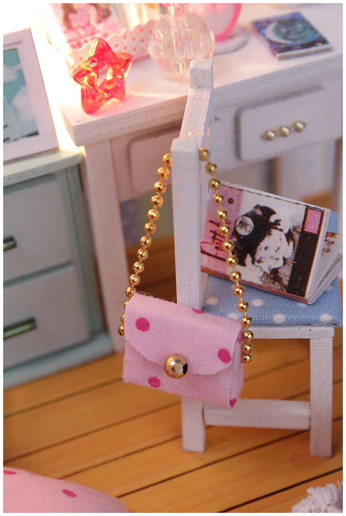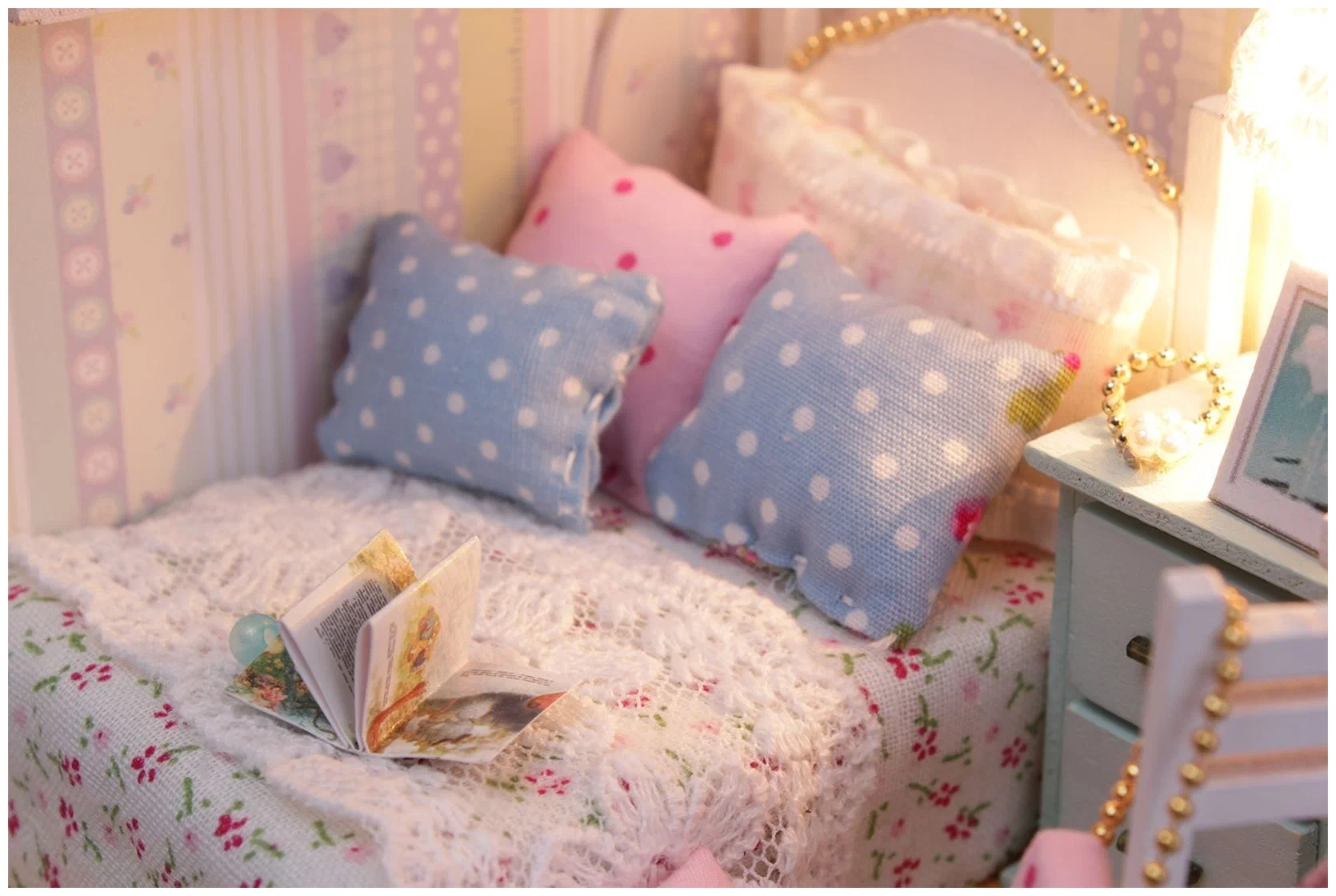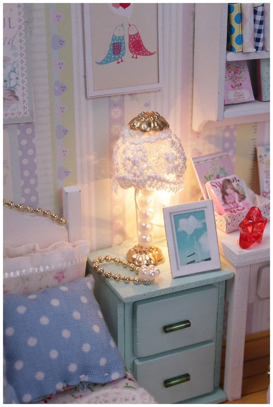 Румбокс Diy House «Комната Полины» - конструктор миниатюрной комнатки, в деталях повторяющий интерьер спальни для девочки. Лучшие дизайнеры ИКЕА позавидуют тому, как на маленькой площади поместились кровать, прикроватная тумба, рабочий стол, настенные полки и даже ещё свободное место осталось. Всё просто, компактно и очень функционально! Прекрасная и нежная девичья спальня, которая в собранном виде поместится на ладонях!