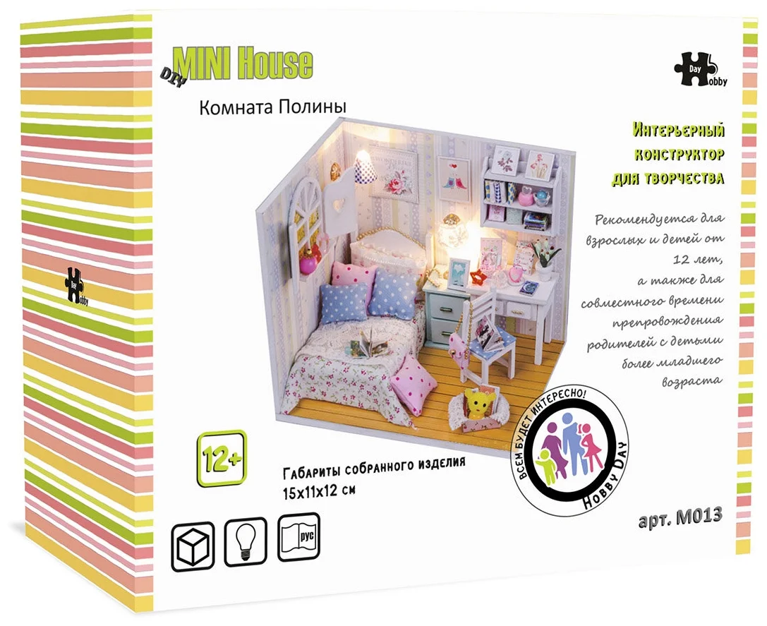 Конструктор интерьерный Румбокс - Комната Полины, с подсветкой, Hobby Day M013