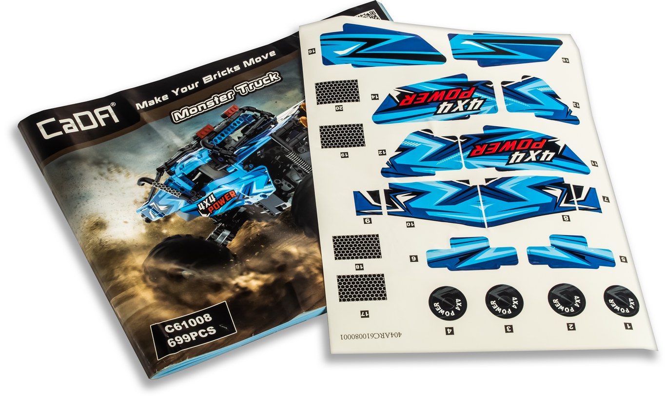 Конструктор - отличная развивающая игрушка, способная увлечь любого ребенка! Особенно если из набора в итоге получится красивый синий внедорожник Монстр Трак, оснащенный электродвигателем и пультом управления. CaDa Technic - линейка конструкторов автомобилей и специальной техники, которые отличаются прекрасной собираемостью, прочностью и технологичностью готовой модели. Детский конструктор CaDa Technic С61008W представляет собой набор для постройки джипа на радиоуправлении и содержит 699 деталей!