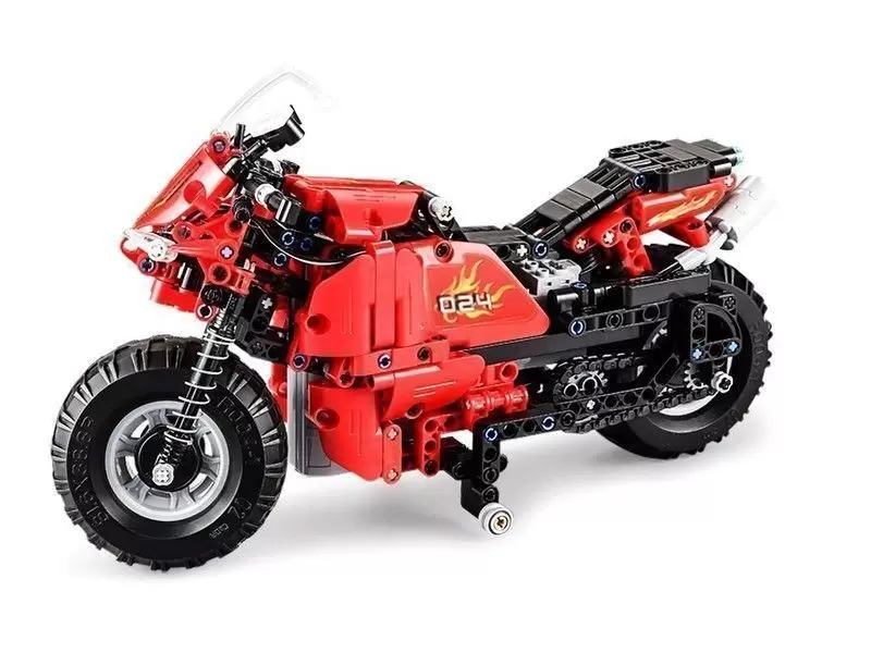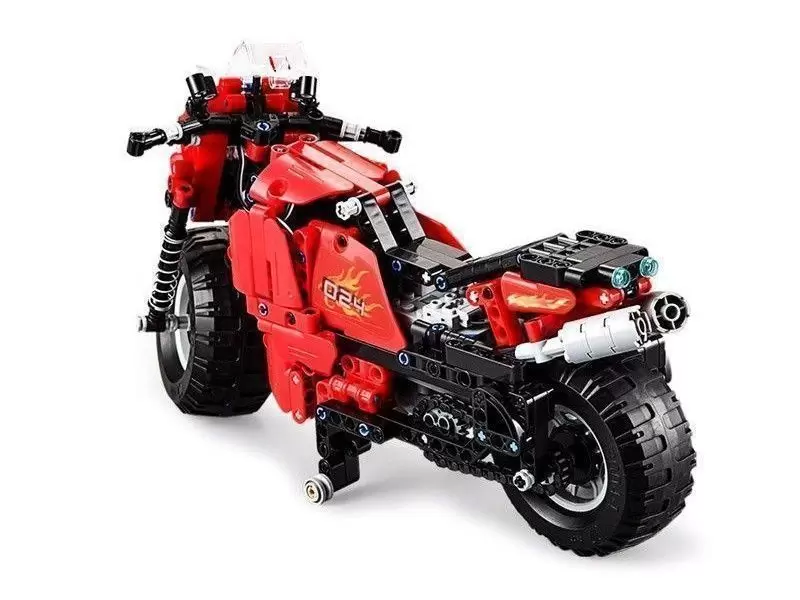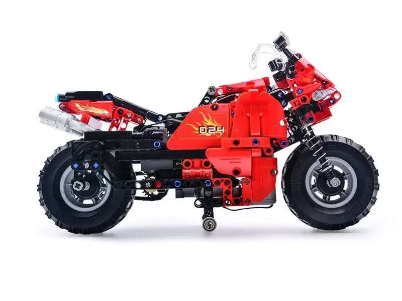 Ребенка захватит процесс сборки мотоцикла с самого начала. А когда получится гоночный мотоцикл, собранный из 484 деталей, не менее захватывающими будут и игры. Мотоцикл управляется пультом дистанционного управления 2.4Ghz, что делает игру более интересной. Управляемый пультом, мотоцикл движется вперед, назад, влево и право.