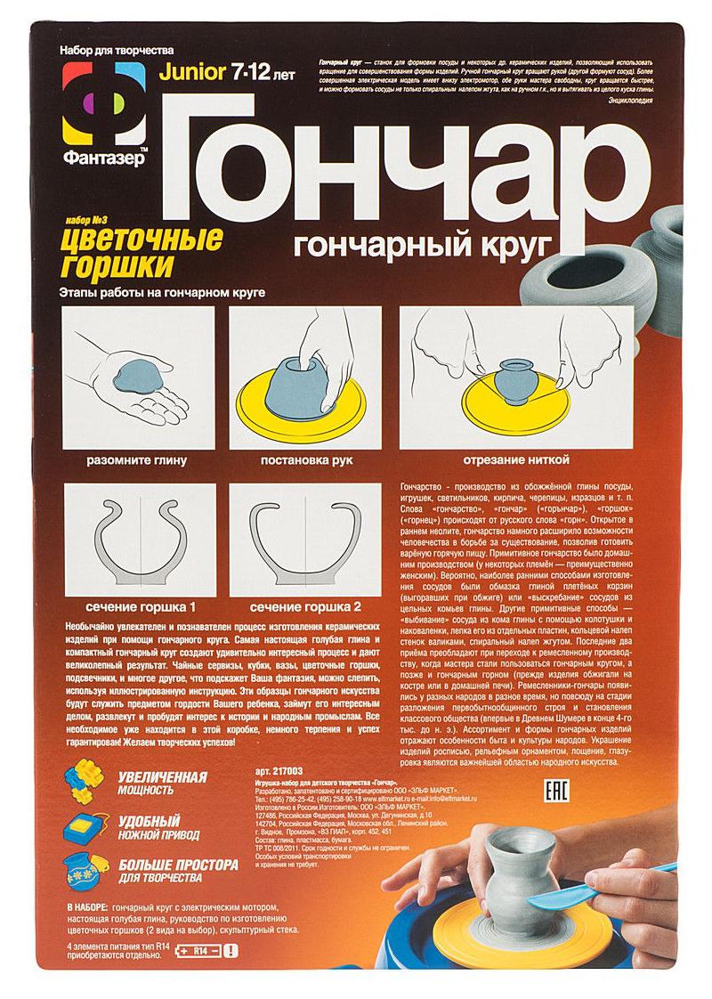 Набор для творчества ФАНТАЗЕР "Цветочные горшки" из серии Гончар подойдет ребенку в качестве первого знакомства с работой на гончарном круге. Такой наборчик позволит ощутить себя настоящим гончаром в мастерской. Фантазируйте, и у вас все получится!