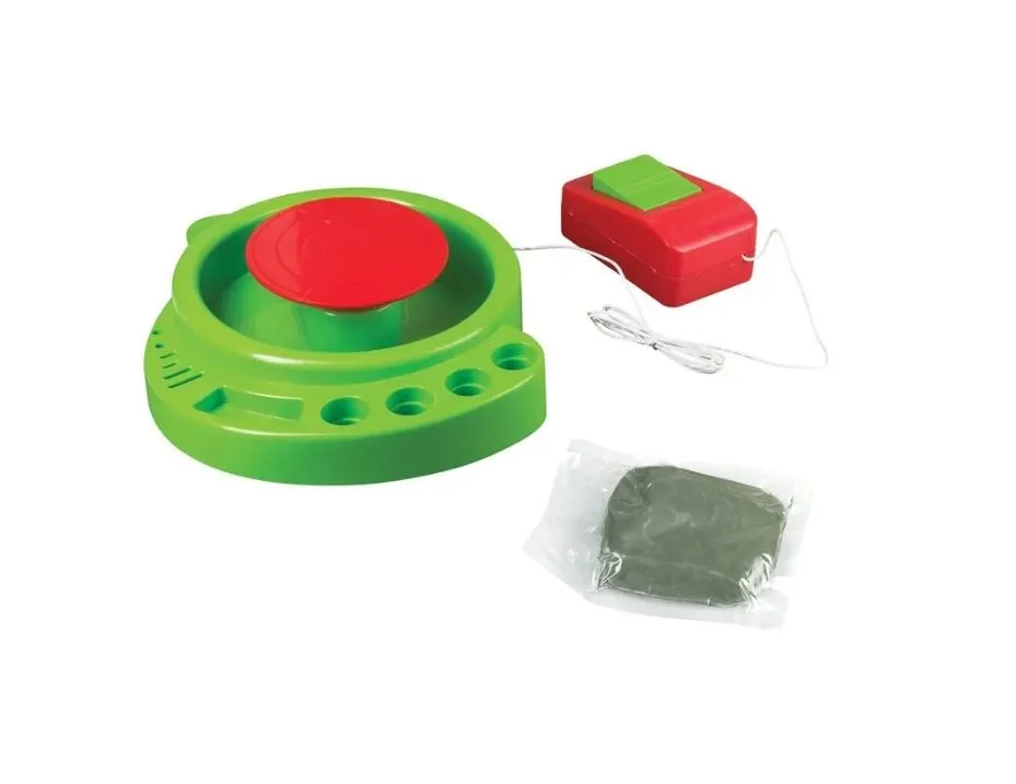 гончарный круг с электрическим мотором, настоящая голубая глина, руководство по изготовлению двух вазочек. |