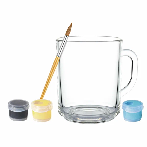 стеклянная кружка 1 шт (высота 9 см, диаметр 7 см, 200 мл), акриловые краски 3 шт (черная, голубая, желтая), рисунок-трафарет 1 шт (16 х 7,5 см), кисточка 1 шт (13,5 см). Материалы: бумага, стекло. |