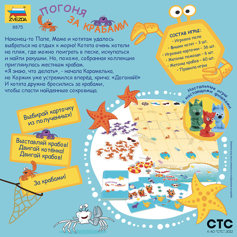 Три кота. Погоня за крабами - настольная игра, Звезда 8875