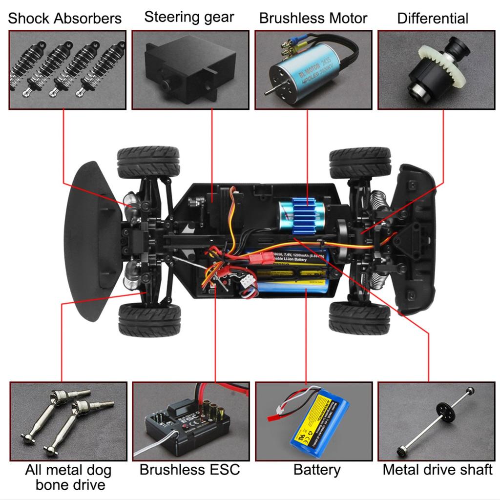 Высокопрочный нейлоновый планетарный дифференциал (может быть модернизирован до металлического дифференциала), прочный и износостойкий, более стабильный при движении по кривой.