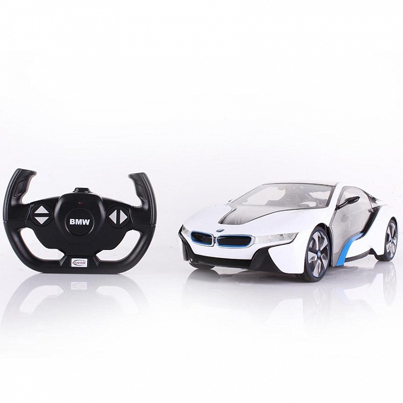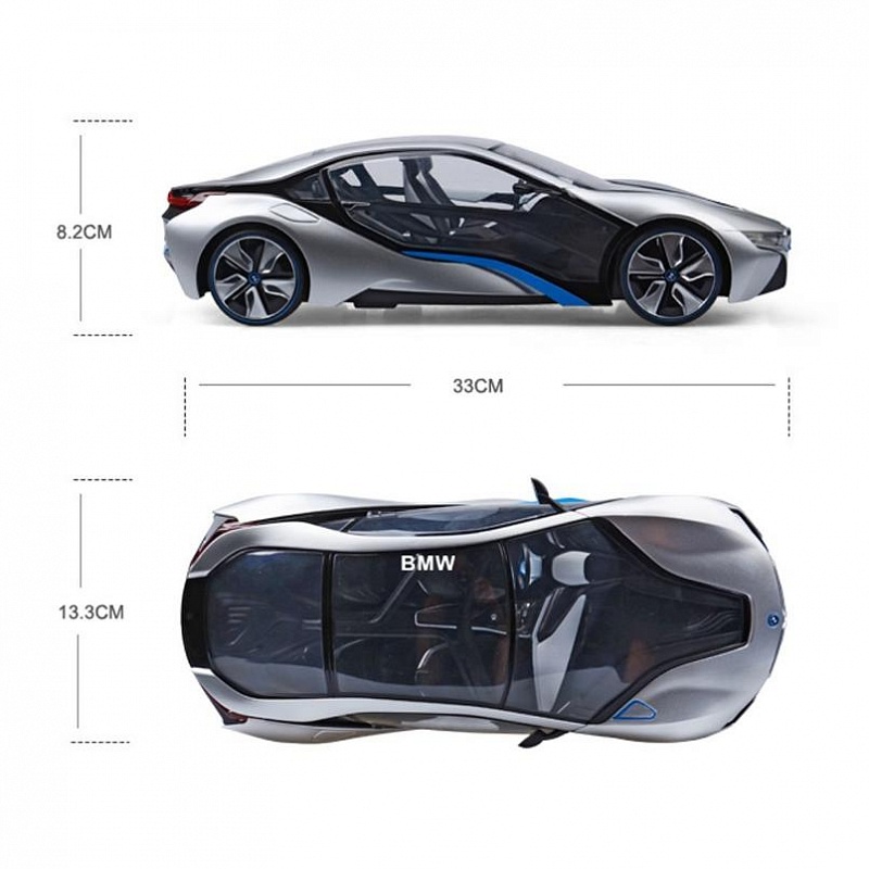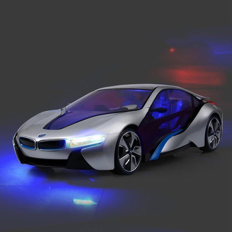 Радиоуправляемая машина BMW I8 от компании Rastar имеет масштаб 1:14. Коллекционная модель белого или серебристого цвета выглядит очень оригинально. У нее низкая посадка и обтекаемая форма, что делает ее похожей на спортивный автомобиль. Игрушечная машинка имеет подсветку интерьера и это придает ей реалистичность. Автомобиль со включенной подсветкой смотрится в темноте очень стильно, что делает его более привлекательным для своего владельца.