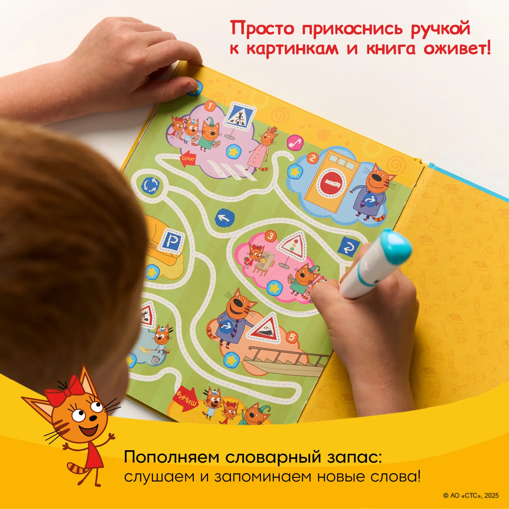 При прикосновении к иконке со звёздочкой с помощью говорящей ручки звучит задание — обвести, прописать или нарисовать. Все задания рассчитаны на самостоятельное выполнение ребёнком без помощи родителей.