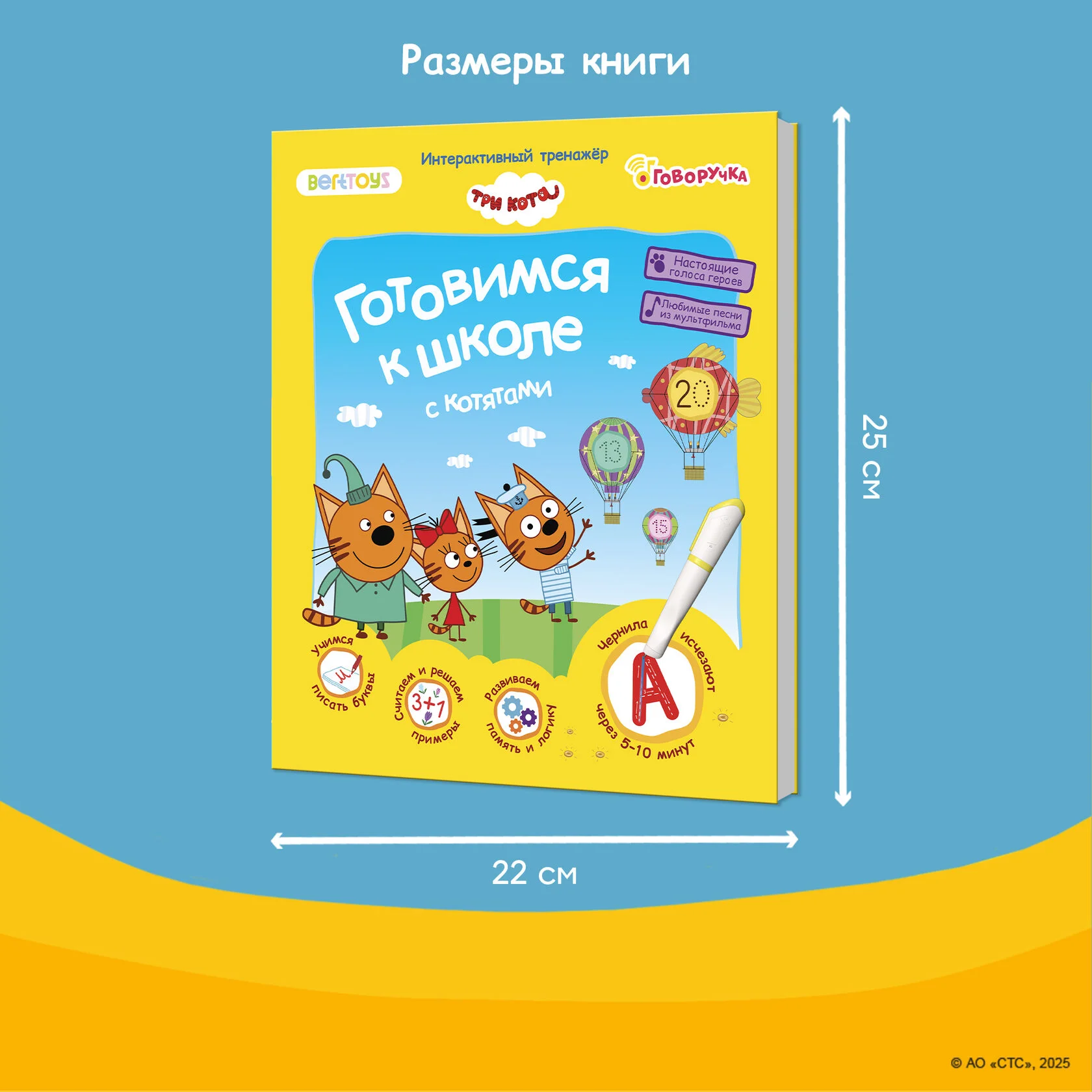 Говоручка быстро обучает навыкам письма, озвучивает все изображения и тексты в книге, самостоятельно дает задания для практики написания, а чернила исчезают, позволяя писать заново.