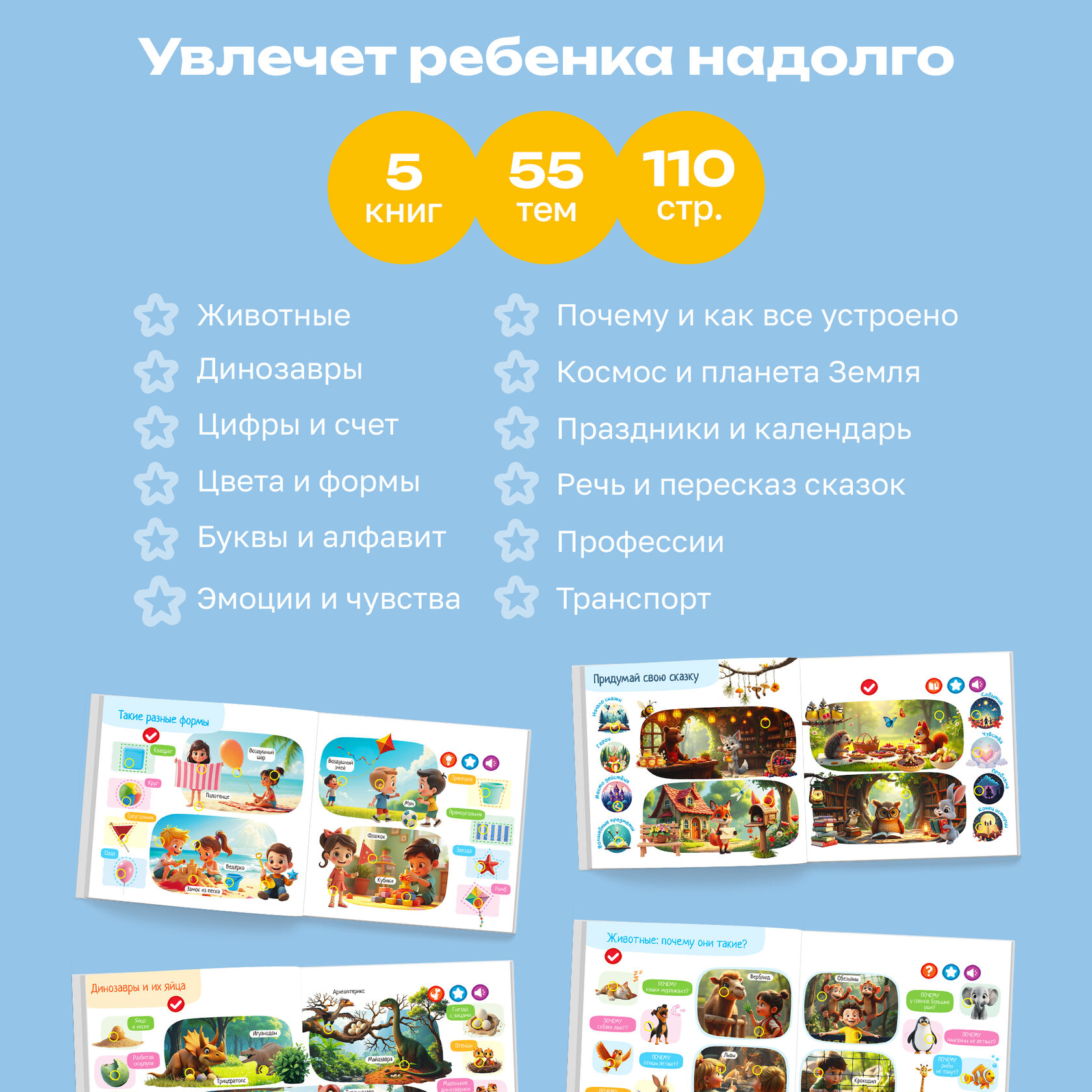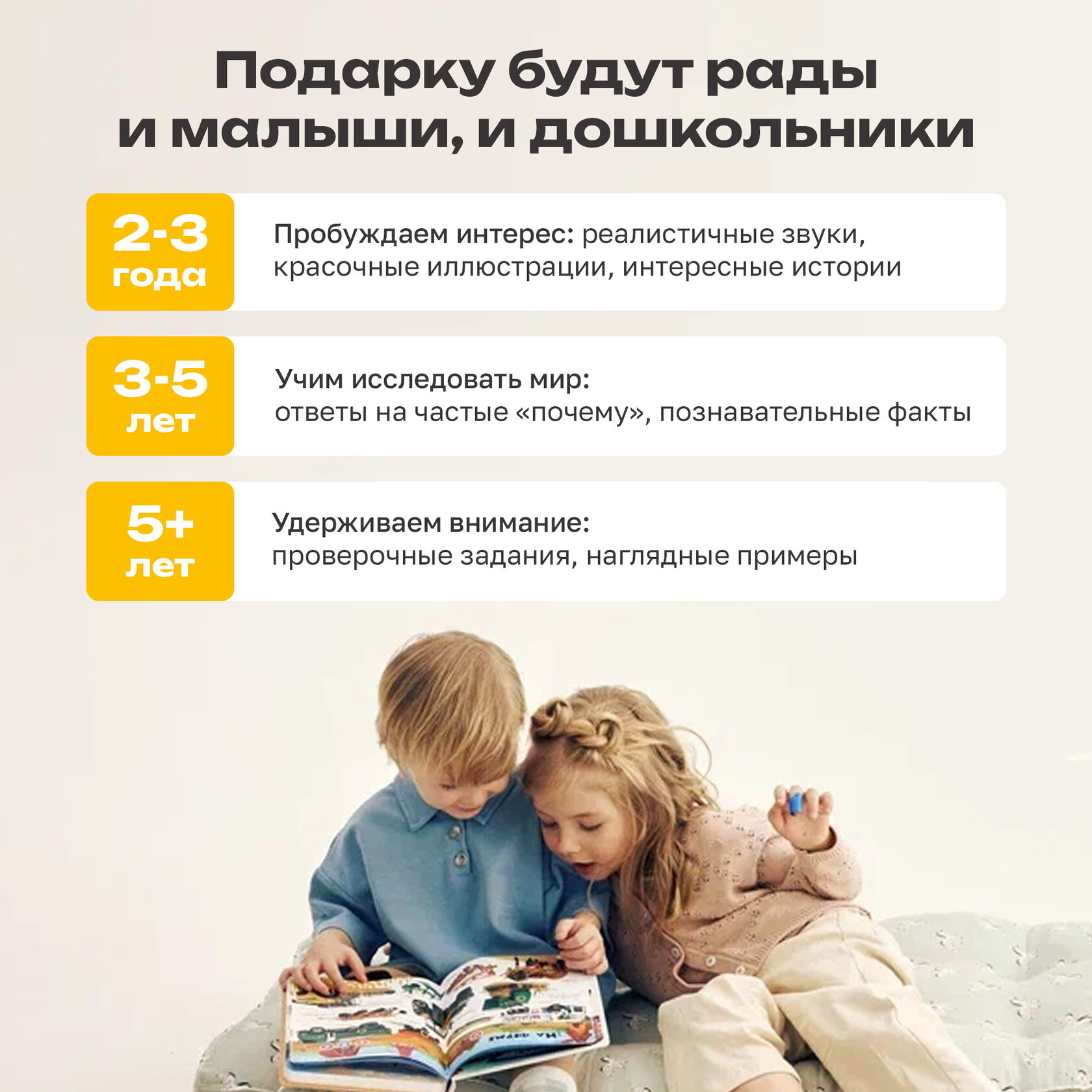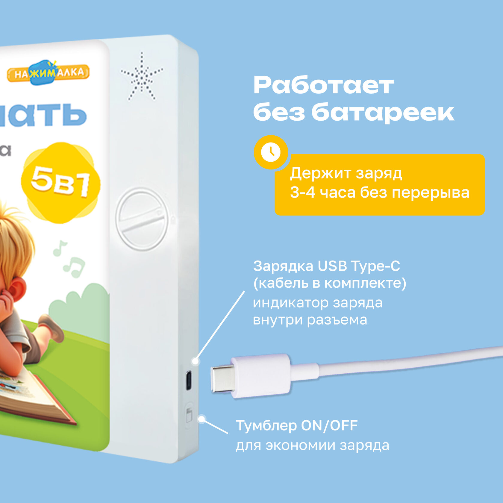Нажималка 5 в 1 – это идеальный подарок для детей от 2 до 5 лет. Интерактивная книга растет вместе с ребенком: сначала можно учить простые названия животных и предметов, а по мере взросления усложнять игру интересными фактами и новыми темами. Незаменимый друг в подготовке к школе в формате игры.