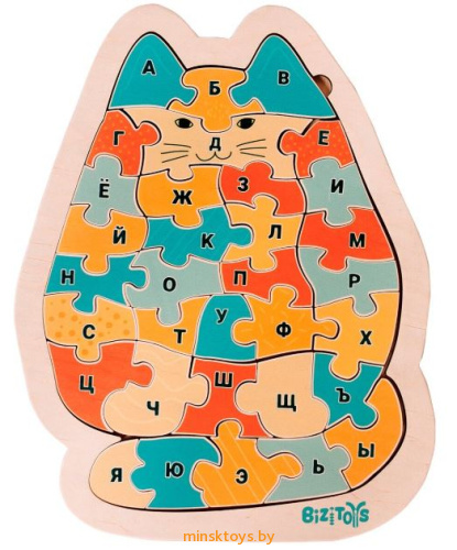 Милый котик пазл поможет дошкольнику запомнить буквы и их последовательность в алфавите! Необычная форма пазлов добавит интерес к сборке целого котика. Идеальный способ запомнить алфавит на кириллице