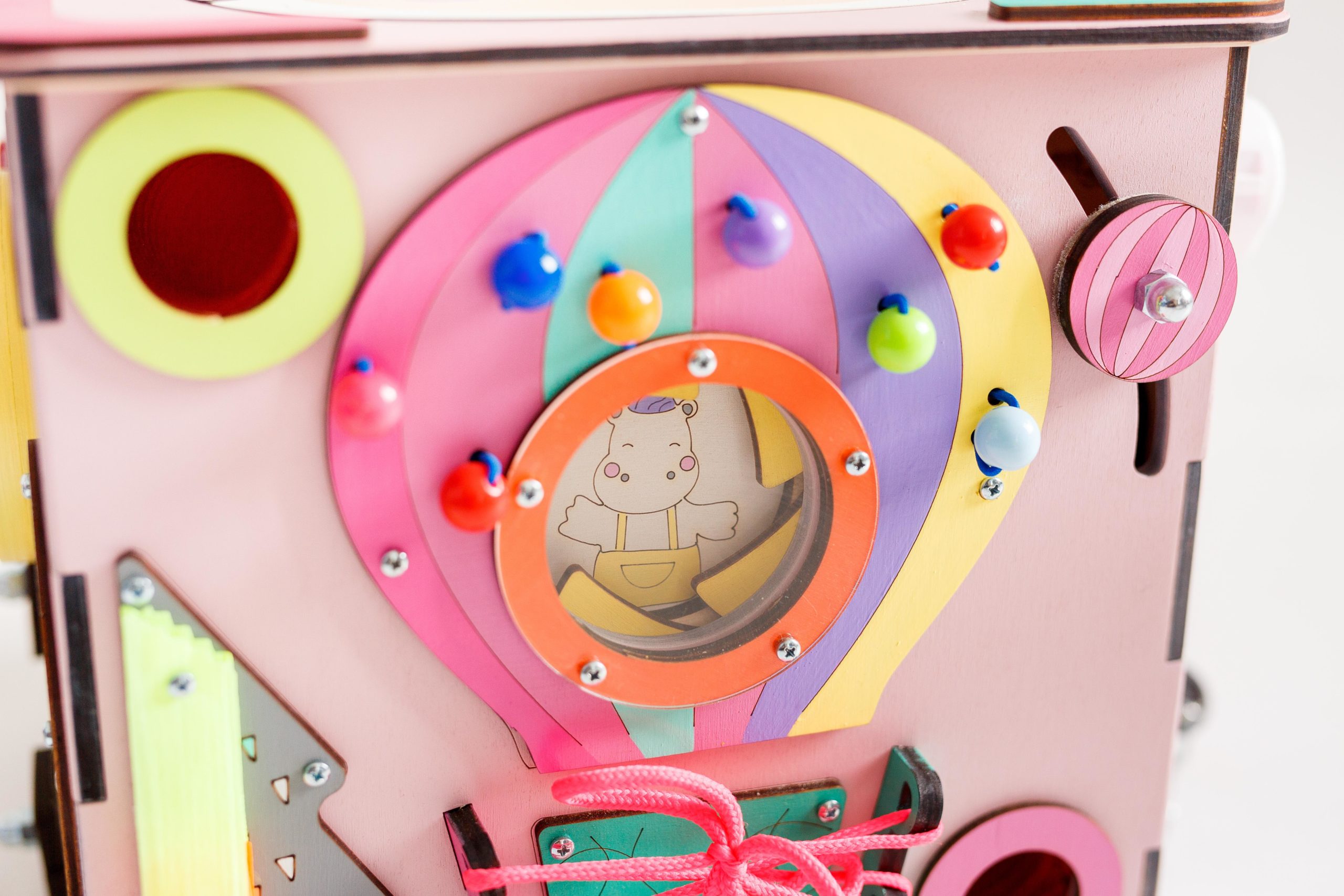 Бизиборд для детей с подсветкой - Зверушки розовый, 2525.04