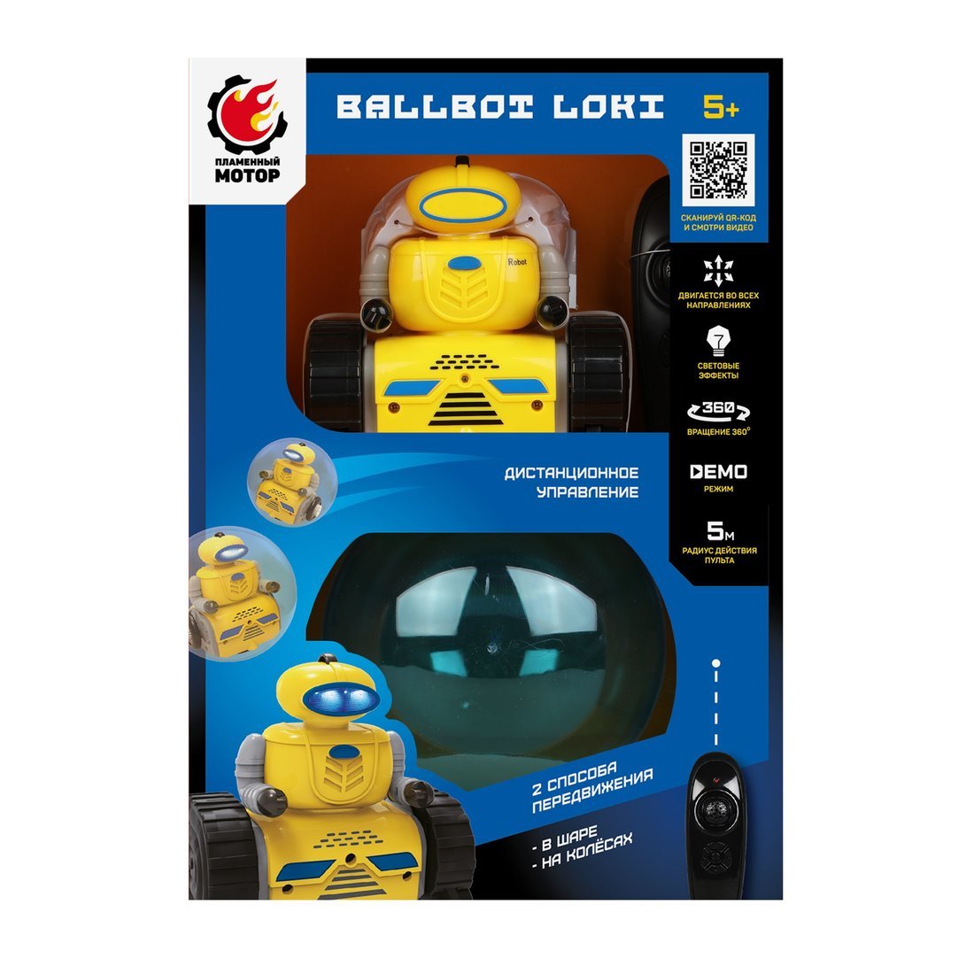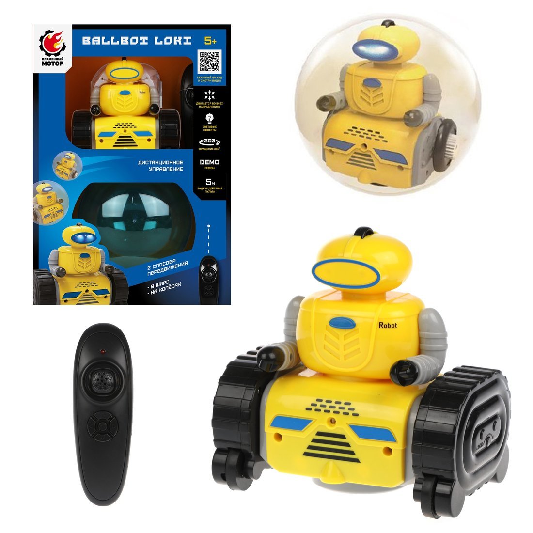 Робот радиоуправляемый передвигающийся в шаре и на колесах BallBot Loki, фирмы Пламенный мотор 870373 желтого цвета - отличный подарок для вашего ребенка!