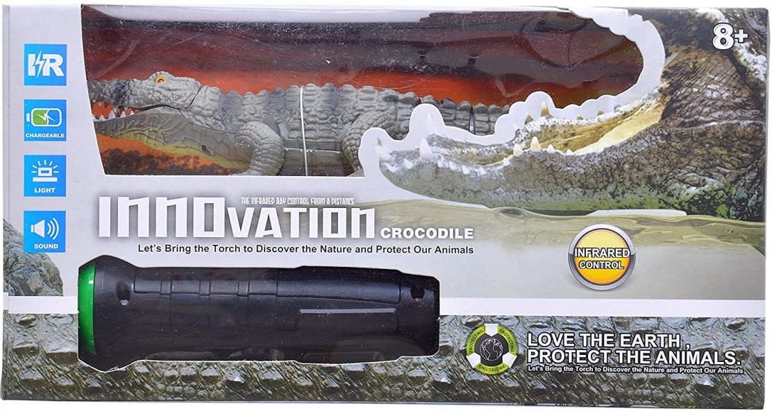 - Модель имеет звуковые эффекты. При нажатии кнопки на пульту ДУ игрушка готова издать грозное рычание! Играть с таким подвижным и реалистичным крокодильчиком – одно удовольствие.