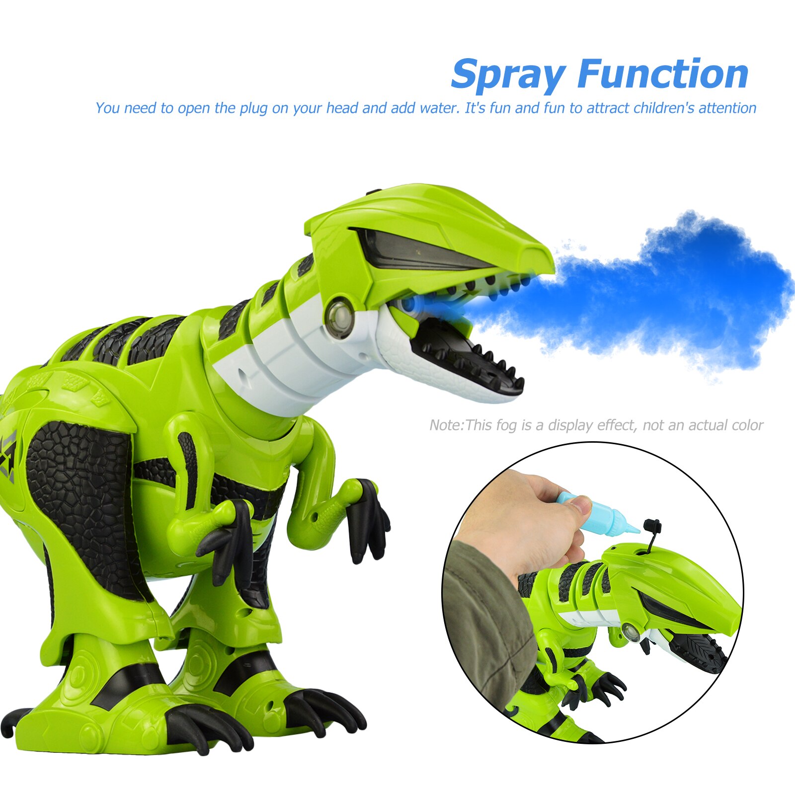Радиоуправляемый интерактивный динозавр может ходить в нескольких режимах, разворачиваться в обе стороны, проигрывать музыку. А также робот выпускает пар изо рта. Пар в свою очередь подсвечивается лампочками, что создаёт эффект огня.