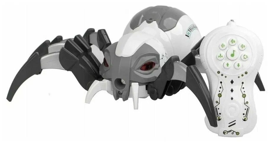 Игрушечный робот-паук на радиоуправлении. Функции: движение вперёд и назад, произвольное движение в разные стороны, выпускание пара с подсветкой, воспроизведение звуков и музыки. Команды задаются нажатием кнопок пульта. Во время игры глаза паука светятся мерцающим светом.