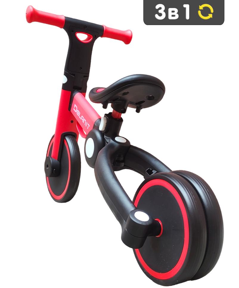 Беговел-велосипед с родительской ручкой 3 в 1 трансформер, Delanit T-801redRR
