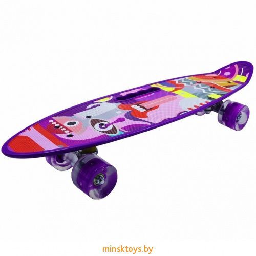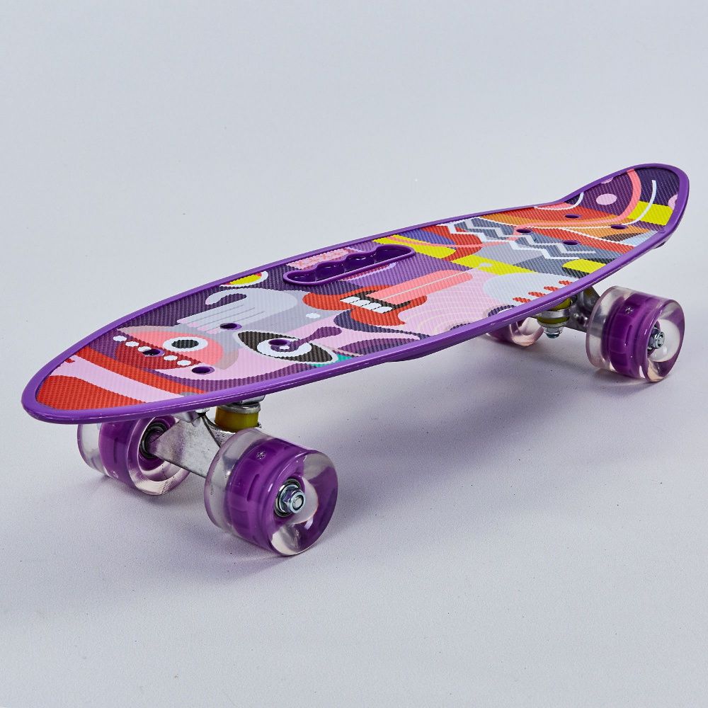 Скейтборд (пенни борд) с ручкой - Абстракция, светящиеся колёса, 885/13mi