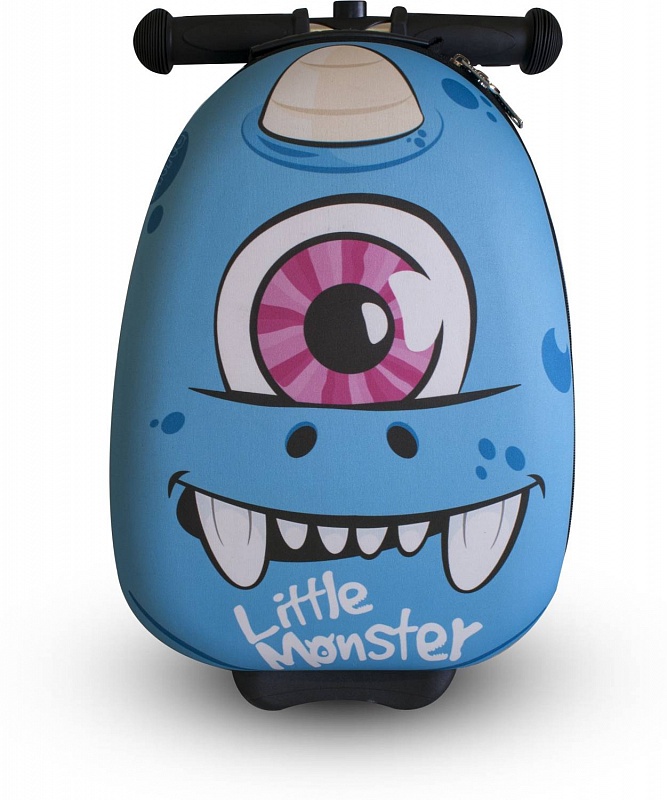 Самокат-чемодан в виде синего монстра от британского производителя Zinc - стильный и качественный самокат, который приведет в восторг самого юного путешественника.