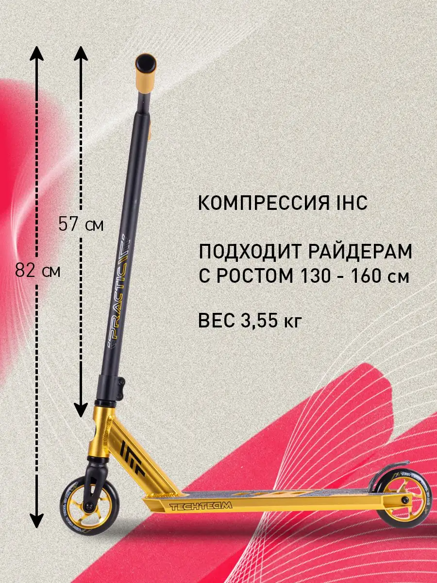 Трюковой самокат Practic черно-желтый,Tech Team 373649