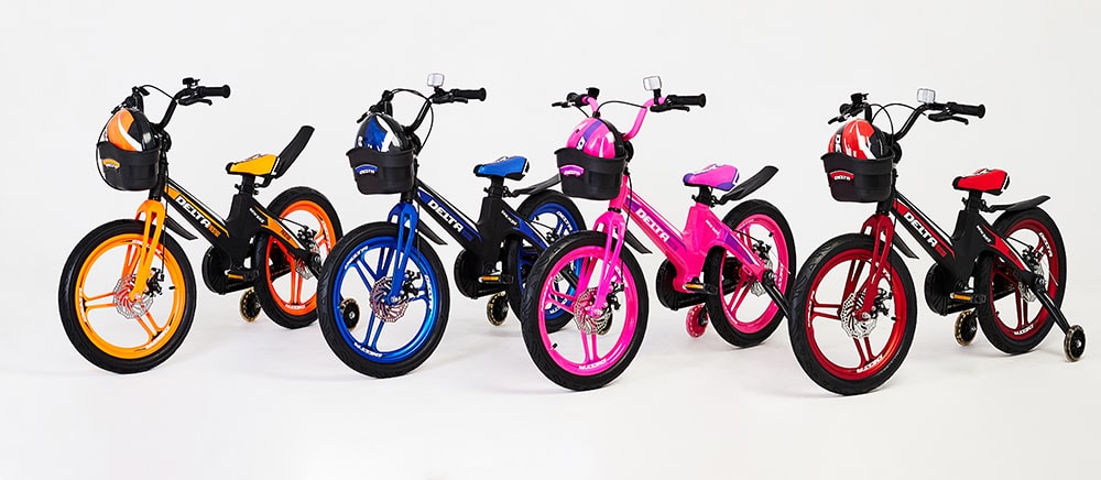 РАЗМЕР 18`` магниевая рама и вилка, магниевые колёса и кронштейны тренировочных колёс, мягкие полиуретановые светящиеся приставные колёсики, передний ручной тормоз v-brake, шлем и корзина в комплекте
